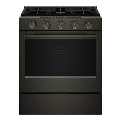 Turn everyday meals into bold, flavour-packed experiences with the KitchenAid Black Ore Slide-In Gas Convection Range—the most powerful 30-inch gas range KitchenAid has ever created. With an impressive 63,000 total BTUs across five burners, this range delivers precise control for everything from fiery stir-fries to gentle simmers. At the heart of it all is the industry’s largest and most powerful 2-in-1 burner—a stacked design that seamlessly transitions between oval and round, adapting effortlessly to your cookware and your cravings. Whether you’re roasting juicy meats, baking bubbly pizzas with Fresh Pizza Mode, or crisping up wings with No Preheat Air Fry, the convection cooking modes bring consistent results every time. Steam Bake Mode, paired with the included tray, adds gentle moisture for rich, bakery-style breads and decadent cheesecakes. And when your hands are full, control it all with a simple voice command via Alexa or Google Assistant, or use the KitchenAid™ App to manage it remotely. Unleash your inner chef—bring home the KitchenAid gas range in Black Ore and cook with confidence and style.Product Dimensions: Depth: 25.5", Height: 36.75", Width: 30",
