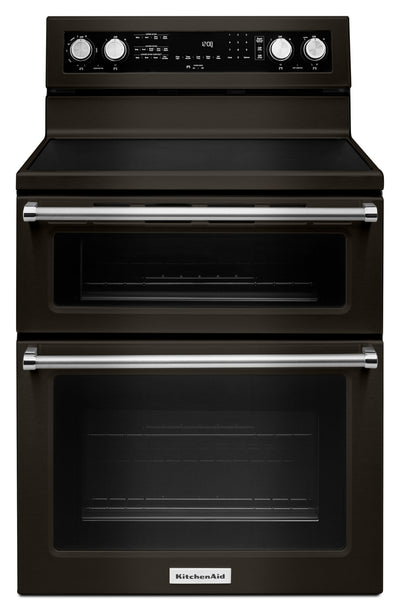 KitchenAid Black Stainless Steel Freestanding Electric Double Oven Range (6.7 Cu. Ft.) - YKFED500EBS