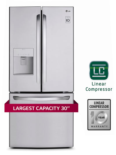 - Enjoy French Door styling in a compact design. The 30-inch width of this LG refrigerator can fit into smaller spaces, but doesn’t compromise on style or features.