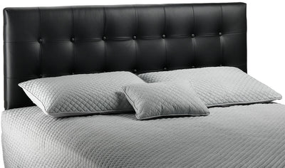 Room for Squares. Though it's full of button-tufted square sections, the Lombardi King headboard will make your bedroom as cool as they come. The black leather-look upholstery offers a rich neutral that's easy to match with other bedroom décor. Adjustable legs allow you to adapt the height to your needs and also easily attach to bed frames. This rectangular headboard will create a squarely modern look for your space. Customer assembly is required.Product Dimensions: Depth: 4", Height: 22.75", Width: 78",