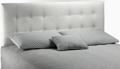 Though it's full of button-tufted square sections, the Lombardi Twin headboard will make your bedroom as cool as they come. The white leather-look upholstery adds a chic neutral that's easy to match with other bedroom décor. Adjustable legs allow you to adapt the height to your needs and also easily attach to bed frames. This rectangular headboard will create a squarely modern look for your space. Customer assembly is required.Product Dimensions: Depth: 4", Height: 22.75", Width: 40",