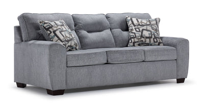 Timeless versatility and picturesque comfort, the Mackay is all about embracing the flexibility of modern living. The Mackay sofa’s sleek lines and minimalist design give it an inviting atmosphere that’ll encourage you to slow down and relax. The marble light grey colour is calming and can easily complement a variety of living room décor. Soft to the touch; this sofas fabric offers a luxurious feel, inviting you to sink into the plush cushions. The sofa even comes with a pair of accent pillows if you’re looking for an extra pop of colour! Proudly made in Canada, the Mackay is crafted with care and quality materials that ensure lasting comfort and support. The frame is made from solid wood, plywood, and industry-approved OSB (oriented strand board), a durable and versatile wood panel similar to plywood that resists warping and distortion. This ensures the sofa has a strong foundation built to last for years to come. The soft yet durable polyester upholstery is comfortable and surprisingly easy to maintain! With cozy cushions and a balanced suspension, you are able to relax while watching a movie, reading a book, or chatting with friends. The Mackay sofa has everything you could ask.Product Dimensions: Depth: 38.5", Height: 37.5", Width: 90.5",