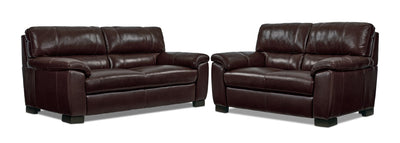 Maddox Leather Sofa and Loveseat Set - Dark Brown