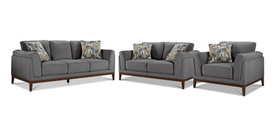 Madrid Sofa, Loveseat and Chair Set - Grey