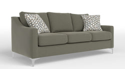 Experience comfort with the Marissa Sofa. This sofa has a contemporary look that will match any living room décor, which will make this couch a staple piece in your home. The slope arms combine a modern design with added comfort from the gently angled arms. Relax your arms or head comfortably on the arms of this sofa. The seat and back cushions are reversible making it perfect for preserving the cushions so you can enjoy your sofa longer. The combination of kiln-dried hardwood, softwood, and engineered wood ensures a strong and durable frame, so your sofa will stand the test of time. The sleek chrome legs add to the elegance of this sofa, while also being durable. With the high-performance fabric this sofa is easy to clean so you are able to relax without a worry while having a snack or drink. Two accent pillows are included to make your sitting experience extra cozy. Enjoy your time on the Marissa Sofa while watching a movie, reading a book or hanging out with friends and family.