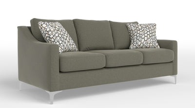 Experience comfort with the Marissa Sofa. This sofa has a contemporary look that will match any living room décor, which will make this couch a staple piece in your home. The slope arms combine a modern design with added comfort from the gently angled arms. Relax your arms or head comfortably on the arms of this sofa. The seat and back cushions are reversible making it perfect for preserving the cushions so you can enjoy your sofa longer. The combination of kiln-dried hardwood, softwood, and engineered wood ensures a strong and durable frame, so your sofa will stand the test of time. The sleek chrome legs add to the elegance of this sofa, while also being durable. With the high-performance fabric this sofa is easy to clean so you are able to relax without a worry while having a snack or drink. Two accent pillows are included to make your sitting experience extra cozy. Enjoy your time on the Marissa Sofa while watching a movie, reading a book or hanging out with friends and family.Product Dimensions: Depth: 37", Height: 36", Width: 79",