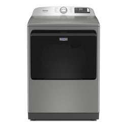 Conquer pet hair and keep your laundry fresh with the Maytag Radiant Silver Smart Steam Electric Dryer (7.4 cu. ft.) featuring the Pet Pro System. Designed specifically for pet owners, this dryer uses an advanced Lint Trap and Pet Pro Option to remove and capture stubborn fur from clothes, towels, and bedding. A targeted water spray and extended cycle work together to lift embedded hair and trap it in the lint screen, leaving fabrics cleaner and fresher than ever. The Wrinkle Prevent Option with Steam gently tumbles clothes for up to 150 minutes after drying, using steam to relax fabrics and reduce wrinkles—perfect for busy days when ironing isn’t an option. With Smart Appliance connectivity through the Maytag™ App, you can monitor or adjust cycles from anywhere for total control. The durable, modern Radiant Silver finish adds a sleek touch to your laundry space. Built strong and backed by Maytag’s legendary dependability, this dryer is your ultimate partner in pet-friendly laundry care.