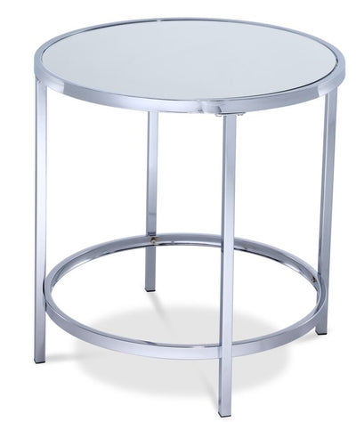 - Crafted from chrome and a mirrored fix top, this stylish end table will complement any décor.