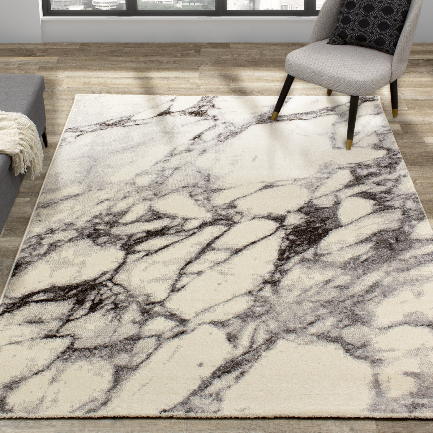 Mirza 5'3" X 7'7" Marble Profile Rug - Cream Grey Area Rug