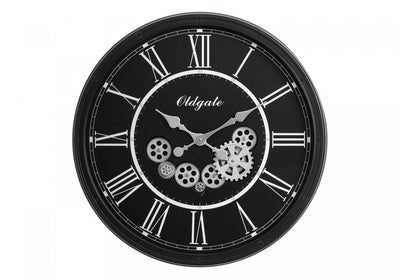 - Make a bold statement with this large, oversized 30" round wall clock featuring a moving gear mechanism in sleek black, perfect for transitional style home decors.