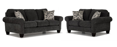 - Generous roll arms, semi-attached back cushions and 5-inch legs merge style and substance.