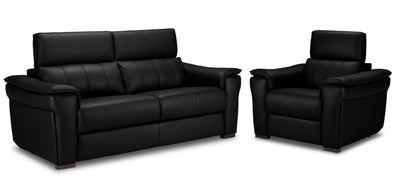 Orlando-Ray Leather Sofa and Chair Set - Black