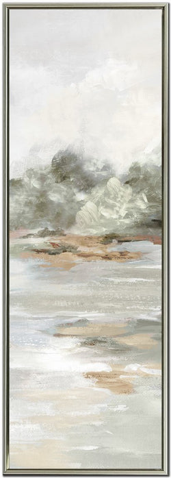 This minimalist landscape features soft, muted colours with a gentle, foggy background, bringing a sense of calm and simplicity to any room. Its understated elegance makes it versatile for various decor styles, enhancing bedrooms, living rooms, or offices with a touch of peaceful, refined beauty.