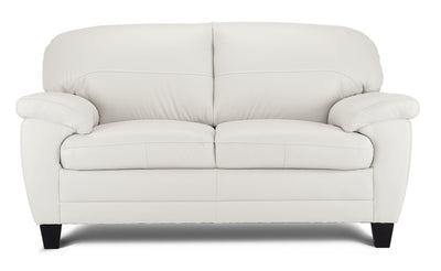 The Raphael Loveseat is the epitome of luxury and style. This piece showcases a rich silver-grey colour, that will always feel welcoming. Crafted with 100% top grain leather all around, this loveseat gives your home the feeling of sophistication. Indulge in comfort and modern design features with wide tapered armrests and subtle white accent stitching which brings a touch of elegance to this piece and allows this loveseat to blend into any contemporary home decor. With the attached seat and back cushions for support you will be able to enjoy and feel the comfort. Proudly made in Canada this loveseat reflects quality craftsmanship and meticulous attention to detail. Experience all the Raphael Loveseat has to offer and transform your home into a true indulgence of comfort and elegance.Product Dimensions: Depth: 37", Height: 35", Width: 64",