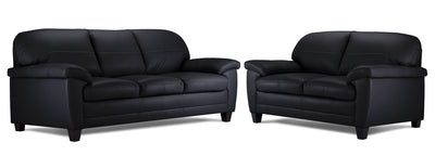 Raphael Leather Sofa and Loveseat Set - Raven