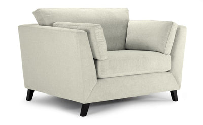 The Rothko Chair combines modern design with timeless style that will become a staple in your living space. This chair features a stunning cream fabric that has a comfortable feel while still maintaining a refined look. Another useful feature of this piece is that its neutral colour is great for matching with your existing pieces, making it a seamless process bringing it to your home. Its wide-angled legs also add a modern flare that will make your guests turn heads. This chair is also equipped with two side bolster cushions that enhance the overall look of your space. Crafted with durable fabric and wood frame, it ensures a sturdy foundation that will stand the test of time. Bring the Rothko Chair into your home today and start enjoying the amazing benefits of this piece!Product Dimensions: Depth: 37", Height: 35", Width: 53.5",