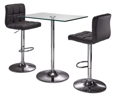 Roxanne 3-Piece Counter Height Rectangular Dining Set - Glass, Chrome, Grey