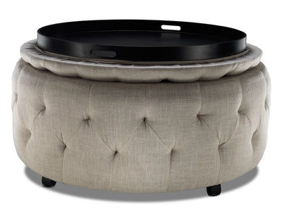 With a neutral, beige finish and lovely tufting throughout, this multifunctional five-piece ottoman set is both stylish and practical. The circular lid can be placed with the tufting up to act as a footrest or flipped to reveal the tray and act as a table. Pie-shaped pieces can be removed from inside the ottoman to provide extra seating, while lockable caster wheels allow for easy transport and mobility.Product Dimensions: Depth: 36", Diameter: 36", Height: 19", Width: 36",