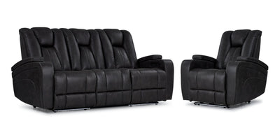 Feel the power and relaxation the San Antonio Dual Power Reclining Sofa and Chair Set has to offer. The neutral grey colour will blend well in any modern contemporary home décor. At each end, the one-touch power control buttons allow you to effortlessly recline to your perfect seating position, offering customizable comfort tailored just for you. Dual headrest and power reclining seats add to the comfort of this set, so you are able to experience a full state of relaxation. The built-in storage and cup holders are a great place to store snacks and drinks, so everything you need is at your fingertips while you curl up and watch TV. The zero-gravity recliner feature reduces strain on your body and promotes better circulation, allowing you to settle down after a long day. Elevate your lounging experience with this thoughtfully designed sofa & chair that blend functionality with style for the perfect addition to your living room.