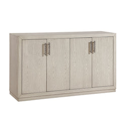 • Modern vertical metal bar hardware with a textured design and pewter finish adds contemporary flair, offering a stylish, refined accent that enhances the piece’s overall look while complementing a wide range of décor.