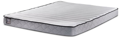 An exceptionally comfortable and durable foam mattress made in Canada and manufactured by Sealy, Canada’s most trusted mattress brand. The Sealy Essentials Evan mattress is here to provide the sleep of your dreams with Queen, Full, and Twin-sized mattresses available for individual purchase or in sets with a box spring. On each queen mattress, the CertiPUR-US™ Certified SealySupport™ HD Foam has been pre-compressed to ensure consistent and long-lasting support. With the SealySupport™ HD Core, the flexible cushioning adapts and offers extra support at the base of the queen mattress to ensure balanced weight-distribution and greater comfort. And thanks to the CleanProtect™ technology, microorganisms don’t stand a chance, so you’ll never have to worry about harmful bacteria accumulating over time. Optimized for back sleepers, the foam mattress lends cozy sustenance that’ll have you waking up refreshed and energized for the day ahead. The tight top mattress topper will help elevate your hips and maintain a neutral spine which allows the body to fully relax and recover during sleep. And with a mattress height of 6”, you get a standard-sized mattress that offers great support and is easy to get in and out of bed from.Product Dimensions: Height: 6", Length: 79.5", Width: 60",
