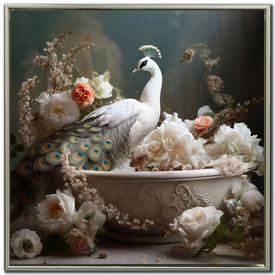 A whimsical and imaginative peacock relaxing in a bathtub exudes a unique charm. It brings a sense of humour and fantasy to any space, perfect for bathrooms, nurseries, or any room needing a fun and unexpected element.Product Dimensions: Depth: 1", Height: 25", Width: 25",