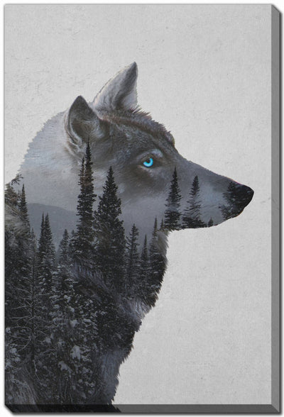 A stunning double-exposure style of a wolf and forest, symbolizing strength, solitude, and wilderness. Works beautifully in masculine interiors, cabins, or modern rustic rooms.Product Dimensions: Depth: 1.5", Height: 28", Width: 22",