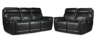 Stallion Leather Dual Power Reclining Sofa and Loveseat Set - Midnight Black
