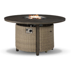 Create a warm and inviting focal point in your outdoor space with the Staten Island Outdoor Fire Table in Grey. Designed for relaxed evenings and effortless entertaining, this fire table is compliance tested for safety, delivering stable heat and clean operation so you can enjoy worry free comfort outdoors. The premium aluminum tabletop resists heat, rust, and scratches, maintaining its sleek appearance through sun, rain, and humidity. A full woven rattan base adds handcrafted texture and natural warmth, reinforced with an internal aluminum frame that provides dependable strength and long-lasting durability. Together, these materials create a balanced look that feels both refined and welcoming on patios, decks, or garden spaces. The fire table converts easily to gas using the included kit and features a realistic ember bed with brown beads that create a cozy, ambient glow without the mess of real wood. Easy care materials keep maintenance simple, allowing you to focus on relaxing, gathering, and enjoying outdoor moments season after season.