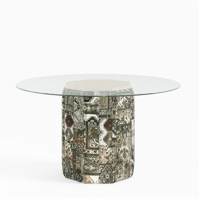 This sophisticated Sundre dining table is an exciting addition to any contemporary space. The striking dinner table features a tempered glass tabletop for a sleek and stylish look, with a solid maple wood framework covered in high-density foam for stability. The “Deja Khaki” colouring of the base creates a chic finish that effortlessly complements a range of modern interiors. As functional as it is fashionable, this versatile round table is designed to comfortably accommodate four diners, making it a practical option for both family dinners and entertaining. Proudly crafted in Canada from the highest quality materials, this glass table is a durable and attractive home-furnishing centrepiece designed to stand the test of time.Product Dimensions: Depth: 54", Height: 29", Width: 54",