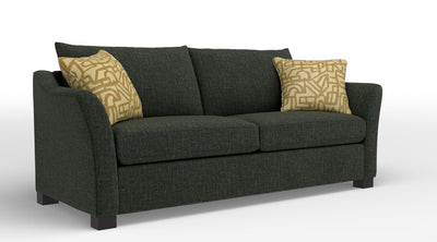 Experience comfort with the Tami Sofa. This sofa has a contemporary look that will match any living room décor, which will make this couch a staple piece in your home. The flared arms offer a traditional style that adds on to the contemporary flair, you can rest your arms or head comfortably on the arms of this sofa. The seat and back cushions are reversible making it perfect for preserving the cushions so you can enjoy your sofa longer. The combination of kiln-dried hardwood, softwood, and engineered wood ensures a strong and durable frame, so your sofa will stand the test of time. The subtle look of the espresso wood legs ensure stability. With the high-performance fabric this sofa is easy to clean so you are able to relax without a worry while having a snack or drink. Two accent pillows are included to make your sitting experience extra cozy. Enjoy your time on the Tami Sofa while watching a movie, reading a book or hanging out with friends and family.Product Dimensions: Depth: 37", Height: 36", Width: 84",