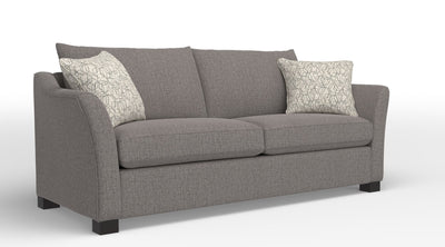 Experience comfort with the Tami Sofa. This sofa has a contemporary look that will match any living room décor, which will make this couch a staple piece in your home. The flared arms offer a traditional style that adds on to the contemporary flair, you can rest your arms or head comfortably on the arms of this sofa. The seat and back cushions are reversible making it perfect for preserving the cushions so you can enjoy your sofa longer. The combination of kiln-dried hardwood, softwood, and engineered wood ensures a strong and durable frame, so your sofa will stand the test of time. The subtle look of the espresso wood legs ensure stability. With the high-performance fabric this sofa is easy to clean so you are able to relax without a worry while having a snack or drink. Two accent pillows are included to make your sitting experience extra cozy. Enjoy your time on the Tami Sofa while watching a movie, reading a book or hanging out with friends and family.Product Dimensions: Depth: 37", Height: 36", Width: 84",