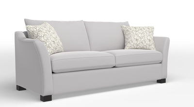 Experience comfort with the Tami Sofa. This sofa has a contemporary look that will match any living room décor, which will make this couch a staple piece in your home. The flared arms offer a traditional style that adds on to the contemporary flair, you can rest your arms or head comfortably on the arms of this sofa. The seat and back cushions are reversible making it perfect for preserving the cushions so you can enjoy your sofa longer. The combination of kiln-dried hardwood, softwood, and engineered wood ensures a strong and durable frame, so your sofa will stand the test of time. The subtle look of the espresso wood legs ensure stability. With the high-performance fabric this sofa is easy to clean so you are able to relax without a worry while having a snack or drink. Two accent pillows are included to make your sitting experience extra cozy. Enjoy your time on the Tami Sofa while watching a movie, reading a book or hanging out with friends and family.Product Dimensions: Depth: 37", Height: 36", Width: 84",