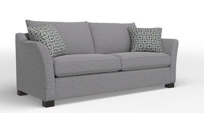 Experience comfort with the Tami Sofa. This sofa has a contemporary look that will match any living room décor, which will make this couch a staple piece in your home. The flared arms offer a traditional style that adds on to the contemporary flair, you can rest your arms or head comfortably on the arms of this sofa. The seat and back cushions are reversible making it perfect for preserving the cushions so you can enjoy your sofa longer. The combination of kiln-dried hardwood, softwood, and engineered wood ensures a strong and durable frame, so your sofa will stand the test of time. The subtle look of the espresso wood legs ensure stability. With the high-performance fabric this sofa is easy to clean so you are able to relax without a worry while having a snack or drink. Two accent pillows are included to make your sitting experience extra cozy. Enjoy your time on the Tami Sofa while watching a movie, reading a book or hanging out with friends and family.Product Dimensions: Depth: 37", Height: 36", Width: 84",
