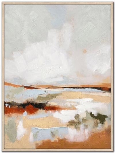 This abstract landscape blends warm earth tones and soft textures, evoking a serene, desert-like scene. It’s perfect for modern or rustic interiors looking to add warmth and depth with minimalism.Product Dimensions: Depth: 1.5", Height: 49", Width: 37",