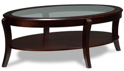 If you're looking for style that's classic, modest and has withstood the test of time, search no further than the Theo coffee table. The elegant, round table top with bevelled glass insert is both beautiful and easy to clean, making maintenance a breeze whether you're passing around the photo album or serving coffee. Curved legs with ridged carving add some visual interest, and the rich mahogany finish speaks of tradition and sophistication.