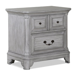 Upon first glance, you'll notice the Tressa night table's nature-inspired finish works flawlessly alongside its traditional, sophisticated features. A weathered white hue covers hardwood veneers for a touch of rustic charm that's sure to fill your bedroom with warmth. Raised panel drawer fronts, rounded pilasters, bronze hardware and elegant mouldings combine to show off this furniture's refined side. Transform your bedroom with the Tressa for a refreshing look you'll love to come home to. Customer assembly required.