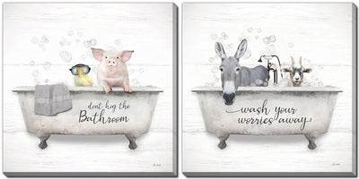 Tub Time Shenanigans Wall Art - Grey/White - 16 X 16 - Set of Two