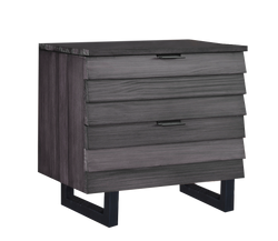 Elevate your bedroom with this unique eye-catching nightstand. Its graphite grey finish features wood grain drawer fronts for a hint of rustic aesthetic combined with black drawer handles and black "U" shaped feet for that overall stunning modern look. This nightstand features two smooth-gliding drawers to store all your bedroom essentials. Its low-profile appeal flaunts a high-style design that makes a statement in any bedroom. Made of 100% solid Brazilian Pine, this nightstand has unique natural characteristics that contribute to its overall warm sleek style. Featuring the wood’s natural look and treated to a unique, 15-step eco-friendly finish that emphasizes the beauty of the wood grain. Whether your décor is rustic, transitional or modern, this collection is a stunning choice. Match it with the rest of the Urban collection, or your own eclectic furnishings.