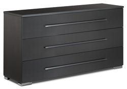 The Valentina dresser raises the bar for bedroom furniture with its combination of functionality and rich contemporary style. A glossy, dark grey finish and stainless steel hardware give this piece a smooth, chic look, while extra-large drawers offer ample storage space for your clothing and other bedroom essentials. Customer assembly required.