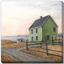 Capturing a peaceful maritime setting, this artwork offers a sense of nostalgia and rural tranquility. The soft lighting and charming architecture make it ideal for farmhouse, coastal, or rustic-themed interiors, creating a comforting sense of home.