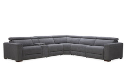 Create the ultimate gathering space in your living room with the Voyageur 6-Piece Power Reclining Sectional with Console. Designed with modern comfort in mind, this reclining sectional features adjustable power headrests that deliver effortless reclining and personalized support—perfect for relaxing, entertaining, or everyday lounging. Blending sleek design with customizable comfort, the Voyageur sectional adapts to your lifestyle. Its clean lines and modular design ensure a seamless fit, while the durable solid wood legs with a walnut finish add stability and a refined touch of elegance. Crafted from 100% polyester, this power reclining sectional combines long-lasting durability with easy-care convenience, ensuring it maintains its beauty and comfort through everyday use. Whether you’re binge-watching your favorite series, enjoying game nights, or simply unwinding, this sectional provides the perfect combination of comfort and style. With its built-in console and contemporary design, the Voyageur Power Reclining Sectional transforms your living room into a welcoming hub for family, friends, and relaxation.