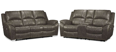 Wesley Dual Power Reclining Sofa and Dual Power Reclining Loveseat with Console Set - Granite