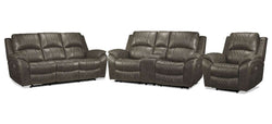 Stampede Leather Sofa, Loveseat and Chair Set - Charcoal