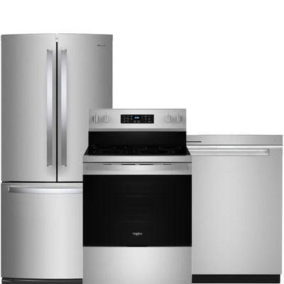 Whirlpool Fingerprint Resistant Stainless Kitchen Package with French Door Refrigerator, Electric Range & Built-In Dishwasher