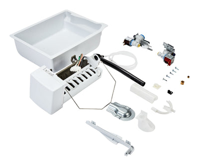 - Package contains (1) SxS Refrigerator Ice Maker Assembly -