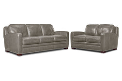 Wilmington Leather Sofa and Loveseat Set - Light Grey