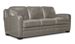 Sink into the sophisticated comfort of the Wilmington Leather Sofa—a statement piece that balances modern design with everyday functionality. This luxurious leather couch is wrapped in 100% top-grain leather, offering an upscale look, a soft feel, and the kind of durability you can count on for years. The finish enhances the leather’s natural grain with a rich, glossy sheen, creating striking visual depth and contrast. Beneath the surface, high-density foam cushions provide reliable support, while high-resiliency fill and padded arms add just the right amount of plushness—perfect for movie nights, afternoon lounging, or hosting in style. Its gently curved arms and sleek silhouette blend classic charm with modern sophistication, effortlessly complementing everything from cozy family rooms to sleek downtown condos. Grounded by block-style legs in a warm espresso finish, the Wilmington Sofa is more than a beautiful anchor for your space—it’s a destination for comfort, connection, and everyday living. Pair this leather sofa with your favourite throw and unwind in elevated style.