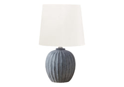 - This stylish 19" table lamp features a chic grey resin base and complementary ivory fabric shade, perfect for creating a warm, inviting ambiance in transitional style living room, bedroom, or office space.